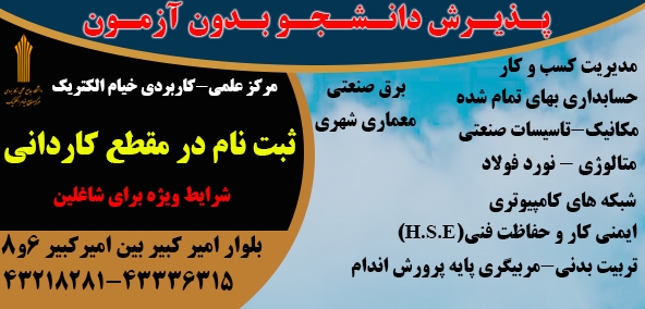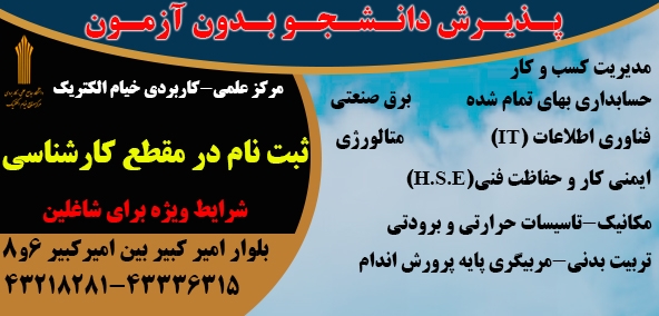 * پذیرفته شدگان گرامی لطفا با در دست داشتن مدارک خود جهت ثبت نام به مرکز مراجعه فرمائید